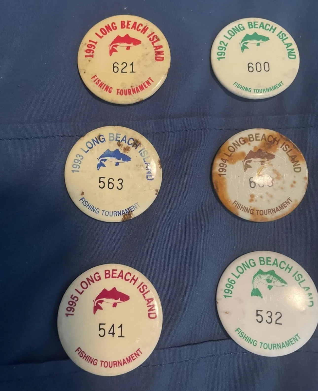 To celebrate the Long Beach Island’s Fishing Derby 25th Anniversary, Commemorative Patches were given to each registrant. Also 220 silver dollars were given away, one each for the five largest bass entered daily. The photo of the patch was provided by long time LBI Surf Fishing Classic participant George Green of Surf City. During Hurricane Sandy cleanup he found the patch and shared it with us. His legacy in the surf fishing tournament runs deep and his stories even deeper!