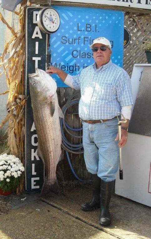Over the years the question about who caught the largest striped bass on Long Beach Island comes up a lot. At the time, David was it! There were rumors of one, possibly two bigger one caught, however, to date David’s 59-7 stands as the biggest Striped Bass of the LBI Surf Fishing Tournament. It’s a monster that might never get beat!