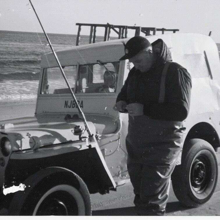 My parents moved here full time before I was born and I was raised on LBI. My parents fished in the boat and on the beach but my mom told me she did not remember my dad ever catching striped bass in the 30s and 40s. The first one she saw was in the 50s. When I met Jingles he was strictly a boat fisherman fishing every night catching his limit of bass at the sod bank. Small fish but a lot of them... One lousy night it was too wind to go in the boat so he walked down Holgate and he was then hooked on the beach too. Catching his limit. That night Roy Stone gave him a ride off the beach and the next day we went and bought a 57 Willies. Roy Stone was one of the winners of a Jeep in the derby.