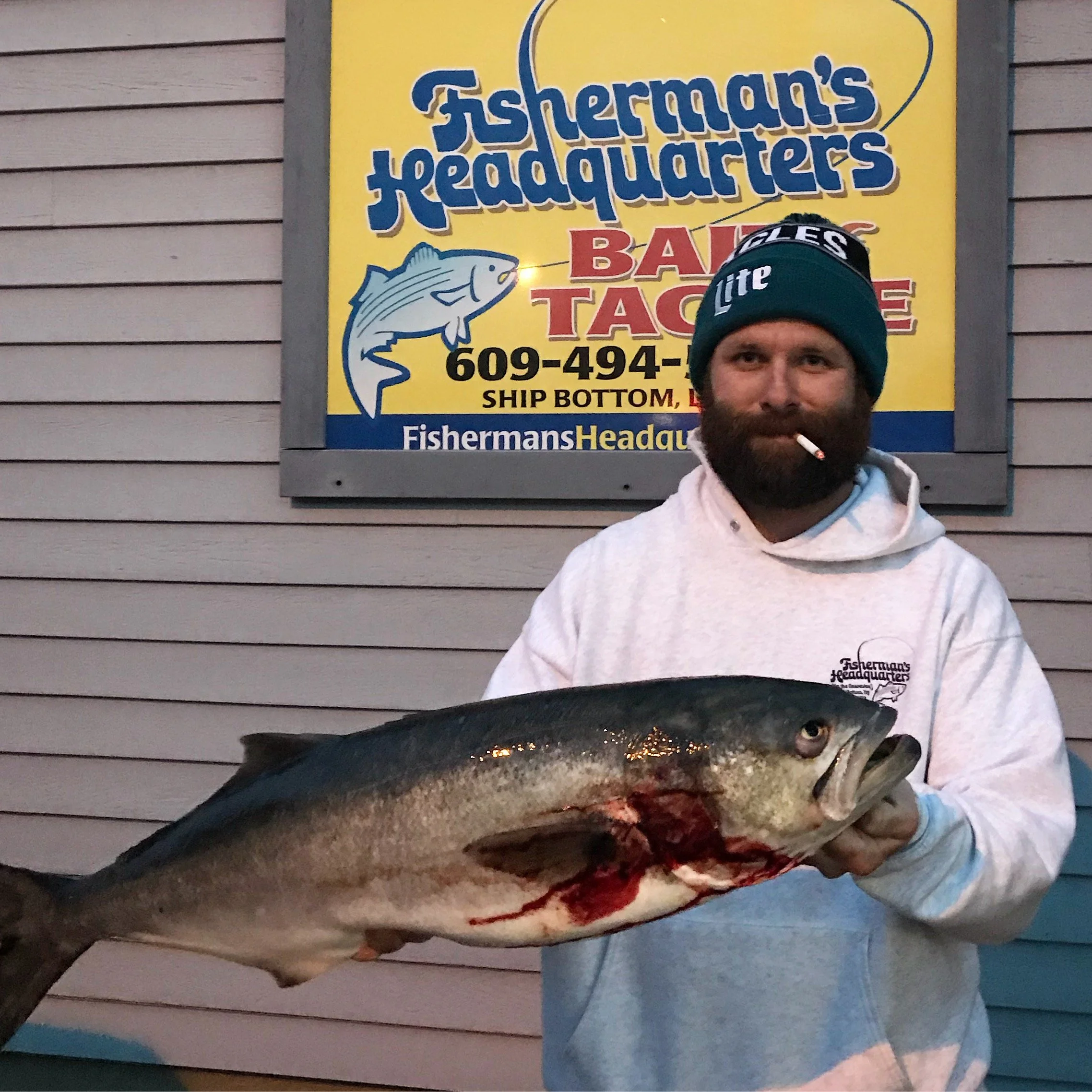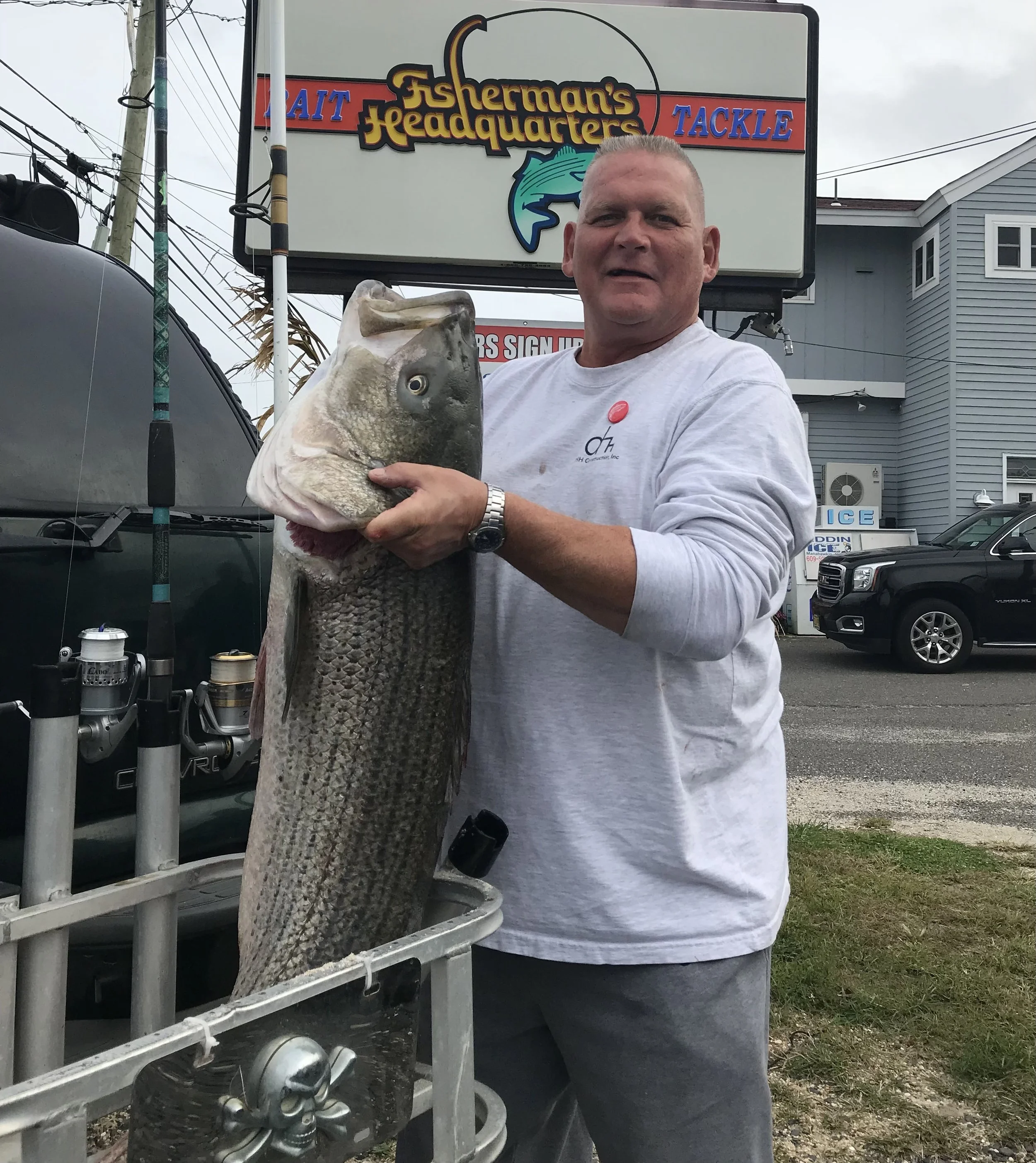 2017 - There was a good showing of nice sized striped bass in the stretch of early to mid-November. 750 anglers. 83 striped bass. 11 Bluefish. There were 11 striped bass caught over 20 pounds, all between Surf City and Barnegat Light on bunker. The largest was John Matt’s 51.5” 48# monster striped bass that took the win, a $2000 cash award as well as a Penn Reel and also the Fishermans Headquarters Striped Bass Calcutta Side-Bet!