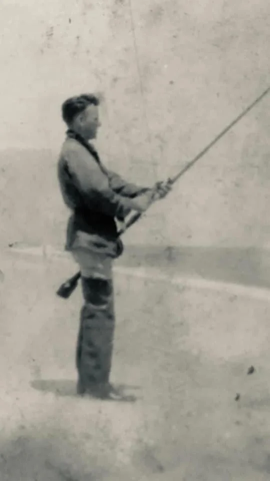 We don’t have a photo of Mr. Holt, but we do have this photo of Leon Lawton fishing the Barnegat Light surf in 1928. Thanks to Dave Minnick who shared this photo of his great grand father.